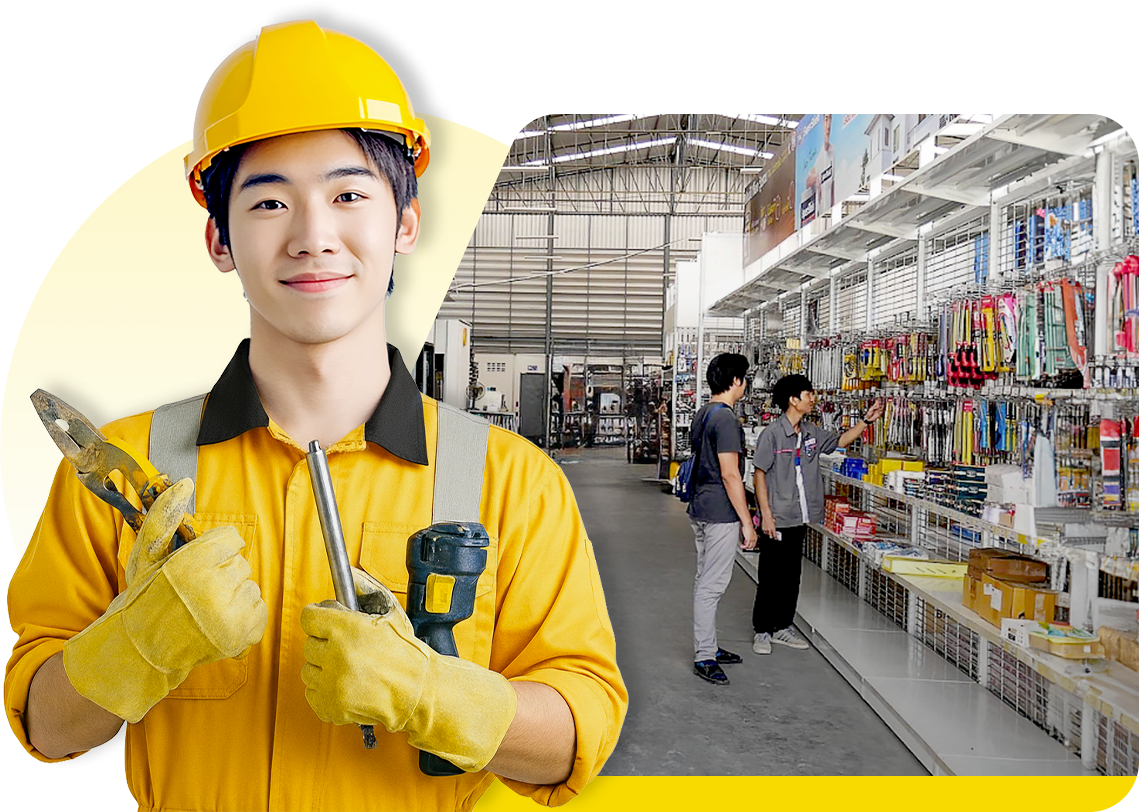 มีสินค้าหลากหลาย ทั้งเครื่องมือช่าง พุกเคมี ฮาร์ดแวร์ และอุปกรณ์ก่อสร้างครบวงจร